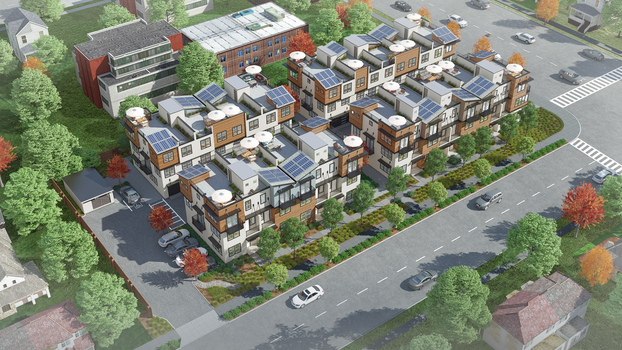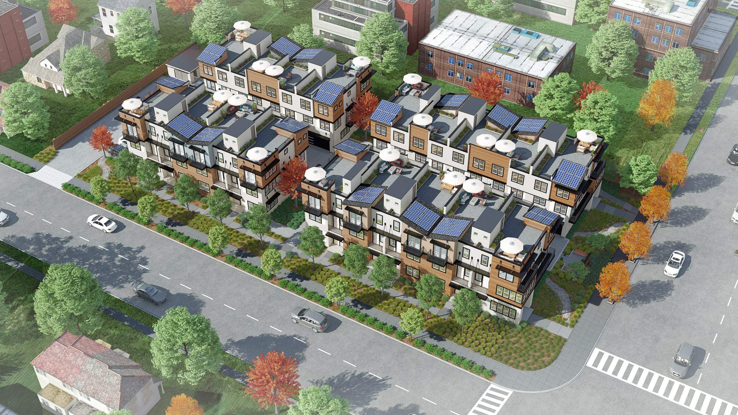 What truly sets this community apart is its unwavering commitment to the environment. With a 100% electric infrastructure powered by solar panels, residents can bask in the comforts of modern living on a spacious rooftop deck while reducing their carbon footprint. Each home is equipped with an electric vehicle (EV) charger, enabling homeowners to effortlessly embrace the future of transportation. To further enhance eco-friendliness, tankless water heaters ensure an uninterrupted supply of hot water while conserving energy and water resources.